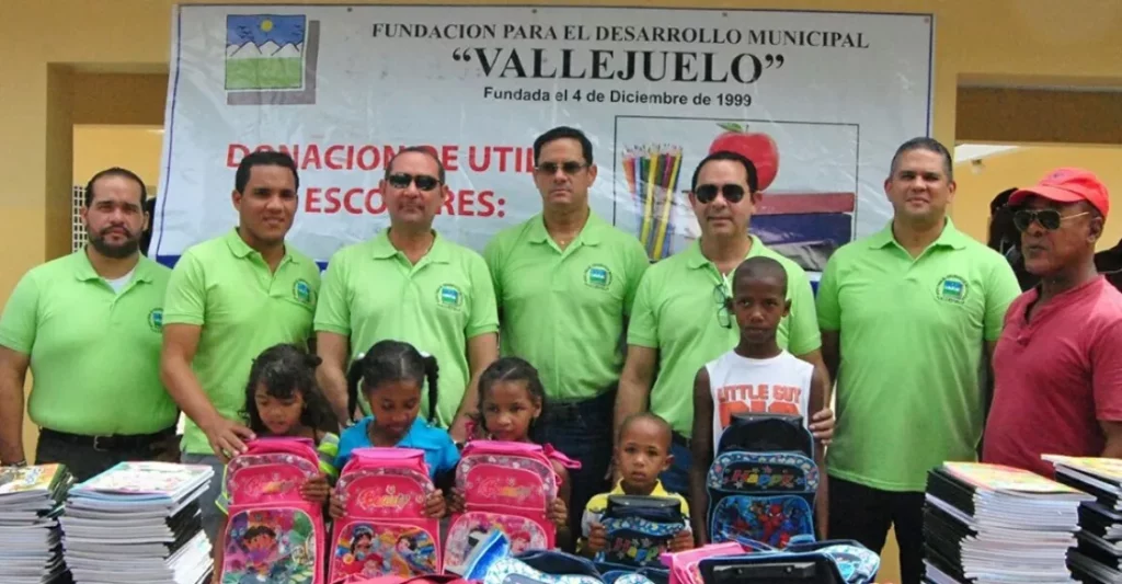 La Fundación para el Desarrollo Municipal de Vallejuelo realizó su 18 operativo de entrega de mochilas, uniformes, mascotas, lápices, reglas y borradores, a más de 3,000 niños en las comunidades Capulín, Sonador, Palma Cana, Río Arriba del Sur, El Guayabo y Sabana Grande del municipio de Vallejuelo.