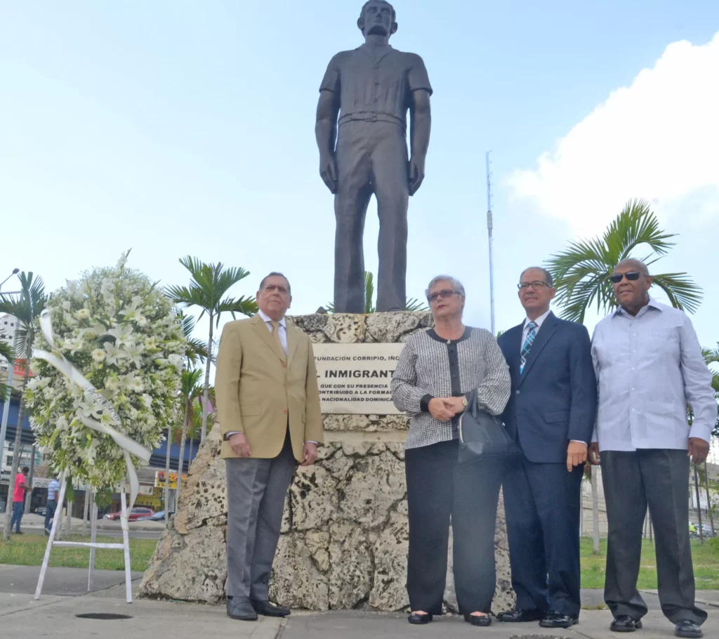 Depositaron una ofrenda floral a los pies de la estatua Al Inmigrante, donde una tarja reza : "al inmigrante que con su presencia ha contribuido a la formación de la nación dominicana".