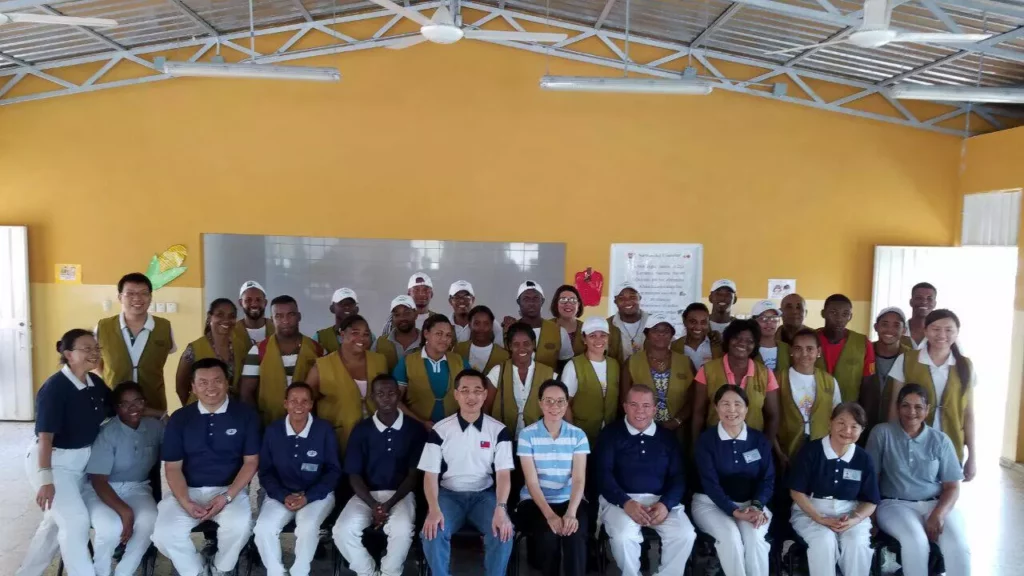 La Fundacion Tzu Chi es una entidad de beneficencia establecida en Taiwán que sigue una visión filosófica de bondad, compasión, alegría e igualdad con el prójimo, eligio a la comunidad de Ramón Santana, San Pedro de Macoris, para ayudar a unas 215 familias, a las cuales se les hizo entrega de arroz, sabanas, cloro, desinfectante, cubetas, escobas, papel higiénico y toallas; igualmente se entregó a 177 alumnos, en dos escuelas de dicha comunidad, zapatos deportivos y útiles escolares.