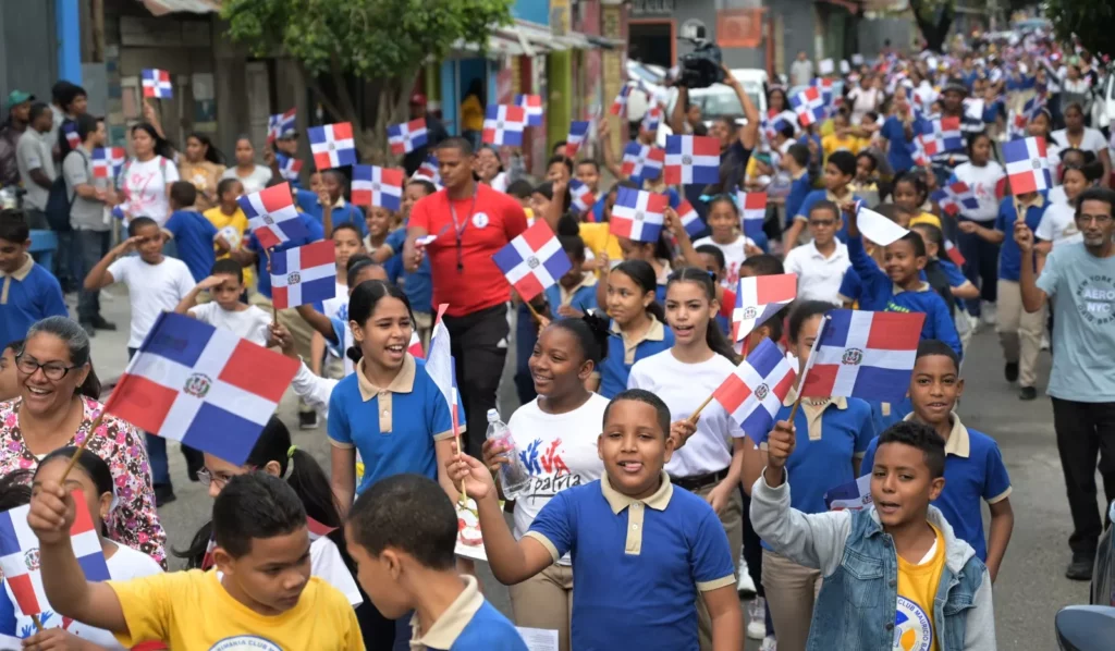 SANTO DOMINGO.- El colorido de miles de banderas dio un matiz agradable a la mañana gris de este viernes, cuando cientos de estudiantes, atletas y residentes del sector de Villa Juana marcharon por las calles en reverencia a la patria.