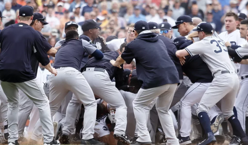 En la sexta entrada, el relevista de Nueva York, Tommy Kahnlel, le tiró por detrás al venezolano Miguel Cabrera, de Detroit, quien luego se enfrascó en una pelea con el cátcher de los Yanquis, Austin Romine en el primero de dos incidentes de ese tipo en el juego.