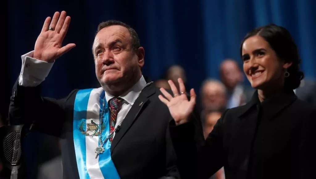Giammattei recibió la banda presidencial en una ceremonia celebrada en el Teatro Nacional Miguel Ángel Asturias, en Ciudad de Guatemala, con la presencia de seis jefes de Estado y aproximadamente 50 delegaciones internacionales.