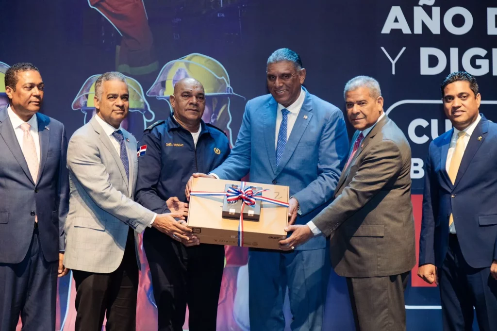Durante el acto, los cuerpos de bomberos recibieron 300 computadoras, donadas por el Ministerio de Educación y el MIP dotó 500 celulares para ser usados en las estaciones. Vásquez Martínez pidió al titular del MAP, Darío Castillo Cruz, trabajar para que los bomberos sean empleados de carrera y así evitar que cualquier alcalde, pueda despedirlos.