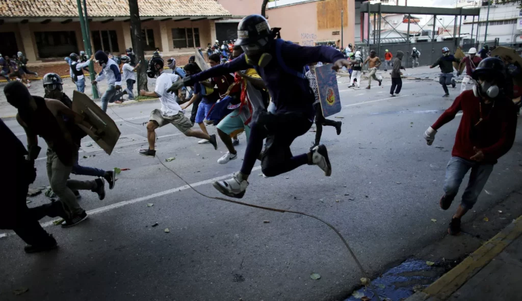 Mientras tanto, la convulsión en las calles era mayor: militares y policías lanzaron andanadas de perdigones y bombas lacrimógenas contra manifestantes, que los enfrentaron con piedras y cócteles molotov en Caracas y otras ciudades.