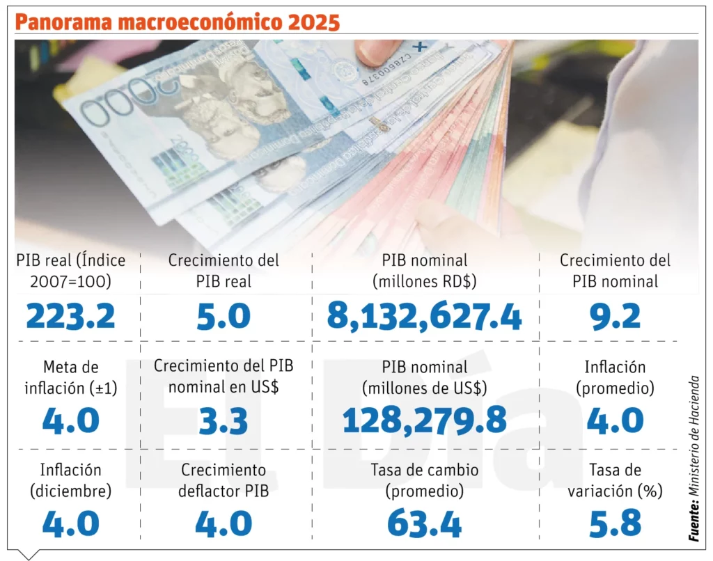 Se prevé que para el año 2025 se logre resultado un primario superavitario en RD$48,217.2 millones, 0.6 or ciento del PIB, para un déficit global de RD$253,689.2 millones, equivalente a 3.1 por ciento del PIB.