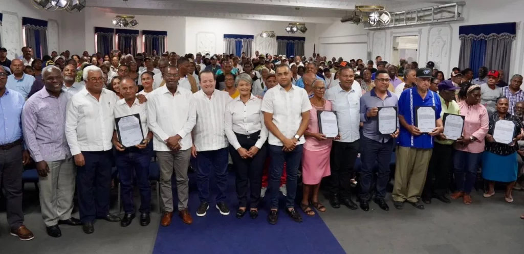 Esta entrega beneficiará de manera directa a 3,736 personas, como parte del programa de Gobierno que busca garantizar la seguridad jurídica, promover el desarrollo social y facilitar el acceso al crédito formal a las familias dominicanas.