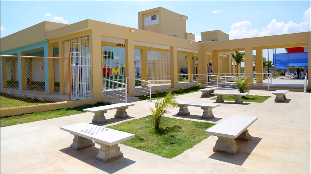 El referido plantel, construido por el Ministerio de Obras Públicas (MOPC), con una inversión superior a los 70 millones de pesos, dispone de 21 aulas que albergarán a 665 estudiantes, laboratorio de ciencias, laboratorio de informática, rincones tecnológicos, oficinas administrativas, biblioteca, cocina-comedor equipados, entre otras facilidades.