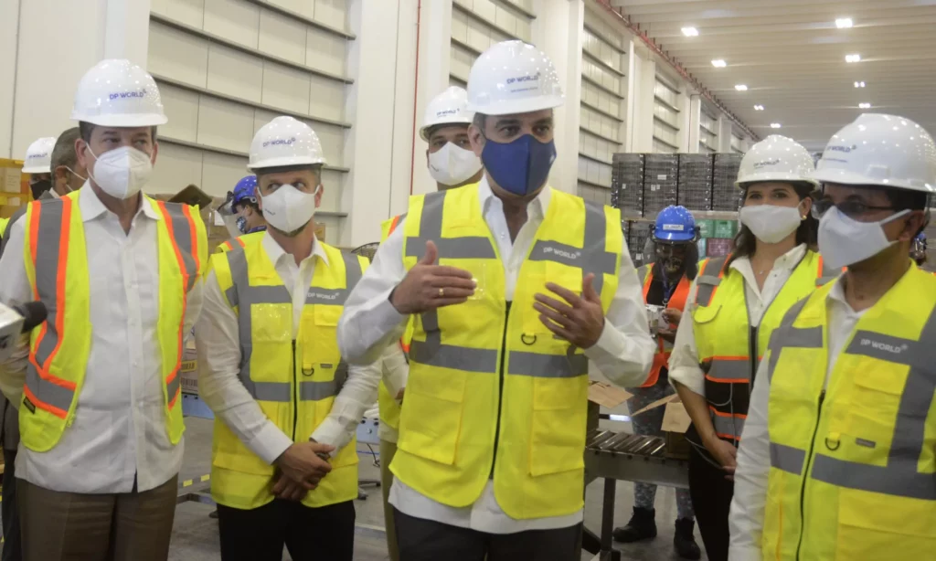 El presidente Abinader habló durante un recorrido por las instalaciones de la terminal portuaria de DP World, posterior al acto de inauguración de la expansión de su muelle principal para la cual se hizo una inversión de 114 millones de dólares.
