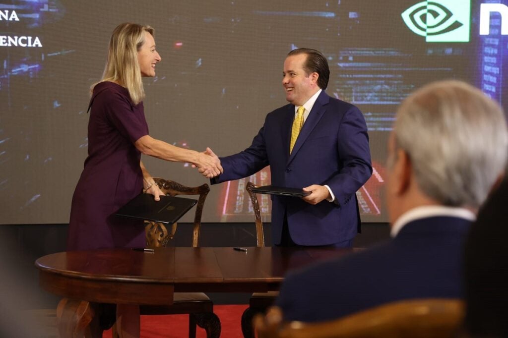 Santo Domingo.- En un acto encabezado por el presidente Luis Abinader, el Gobierno, a través del Ministerio Administrativo de la Presidencia, firmó un Memorando de Entendimiento con NVIDIA, líder mundial en computación acelerada e inteligencia artificial, para acelerar la implementación de la Estrategia Nacional de Inteligencia Artificial y transformar sectores clave de la vida nacional mediante el uso de tecnologías emergentes.
