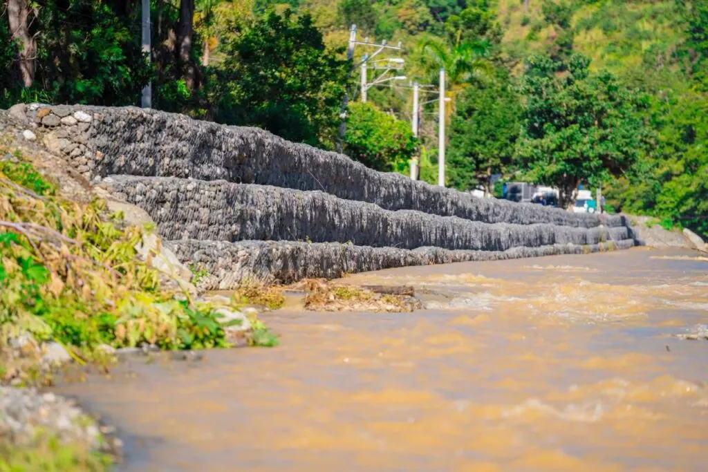El proyecto, ejecutado por el INDRHI, abarcó 2.6 kilómetros del cauce del río Nizao, con trabajos que incluyeron la reparación y construcción de 1.5 kilómetros de longitud de muros de gaviones, la instalación de colchonetas, así como la extracción, conformado y regado de material para mejorar la estabilidad del terreno.