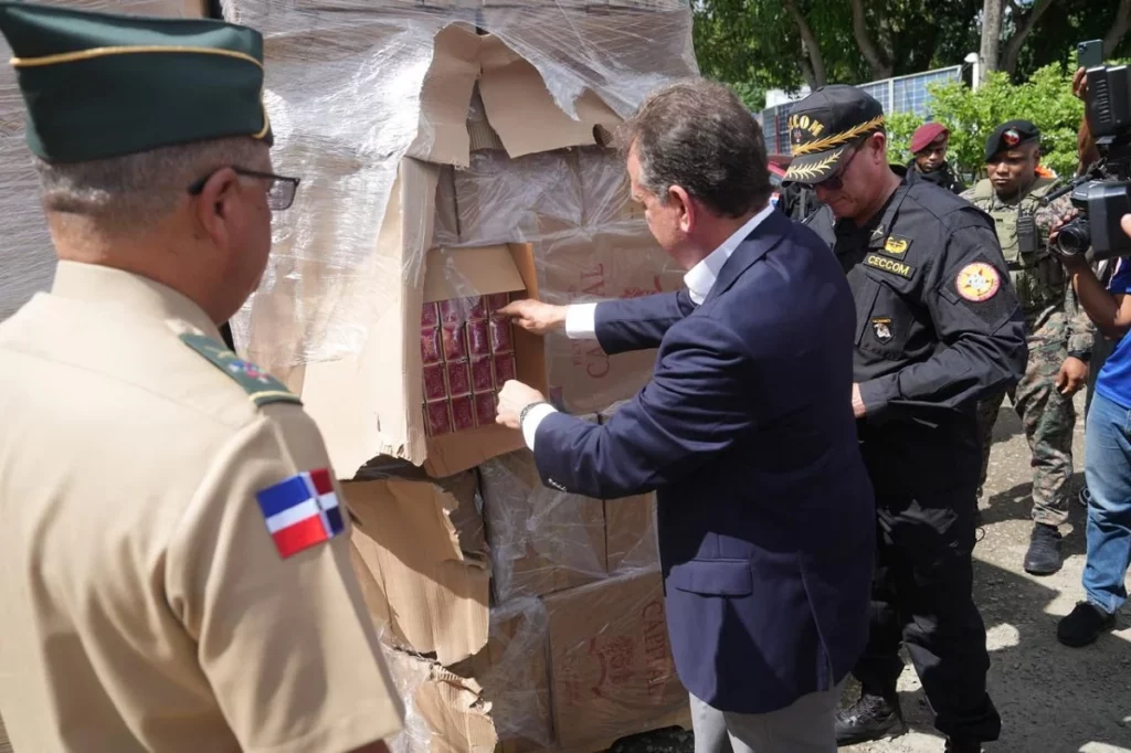 En un operativo reciente en La Vega, el CECCOM y el Ministerio Público, incautaron 3.3 millones de cigarrillos de contrabando. Este decomiso resalta el compromiso institucional con la protección del mercado formal y la salud pública.