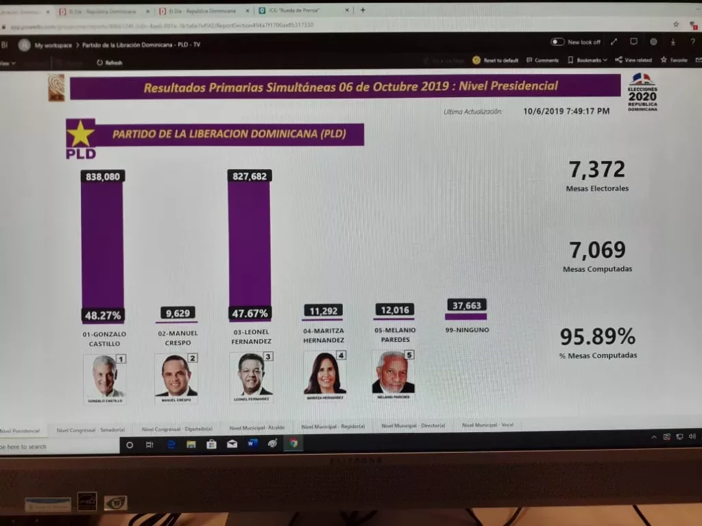 SANTO DOMINGO.- Faltando menos de 200 mesas por computar el precandidato presidencial del Partido de la Liberación Dominicana (PLD) Gonzalo Castillo se perfila como virtual ganador en la primarias con más de 10 mil votos sobre el expresidente Leonel Fernández.