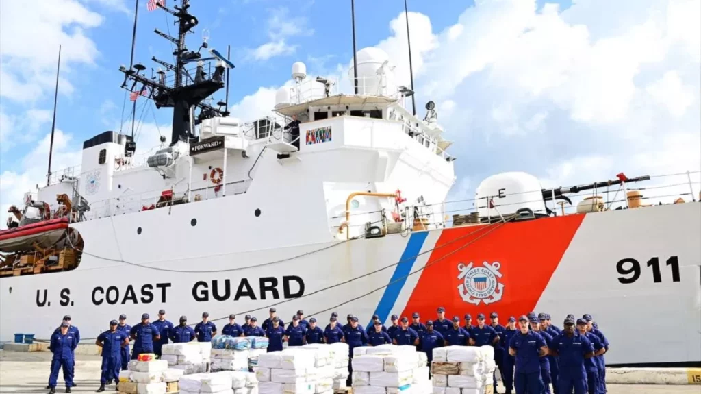 Miami.- Tras patrullar en aguas internacionales del Mar Caribe, la tripulación del buque estadounidense “Forward (WMEC 911)” descargó aproximadamente 13.375 libras de cocaína (6.066 kilos) en Port Everglades, de Florida, con un valor estimado de 176 millones de dólares, informó este martes la Guardia Costera.