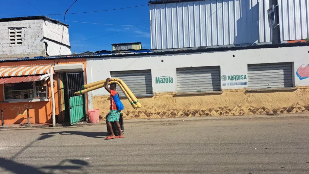 Con grandes bultos, colchones, bicicletas, escobas y otras pertenencias realizan la fila en pleno sol, hasta que llega la hora de poder cruzar hacia el territorio haitiano.