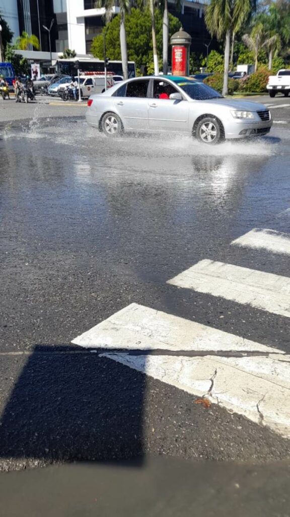 SANTO DOMINGO.– La fuga de aguas residuales en la intersección de las avenidas Jiménez Moya e Independencia sigue siendo un problema sin resolver que, desde hace años, afecta a residentes, transeúntes y comercios de la zona.