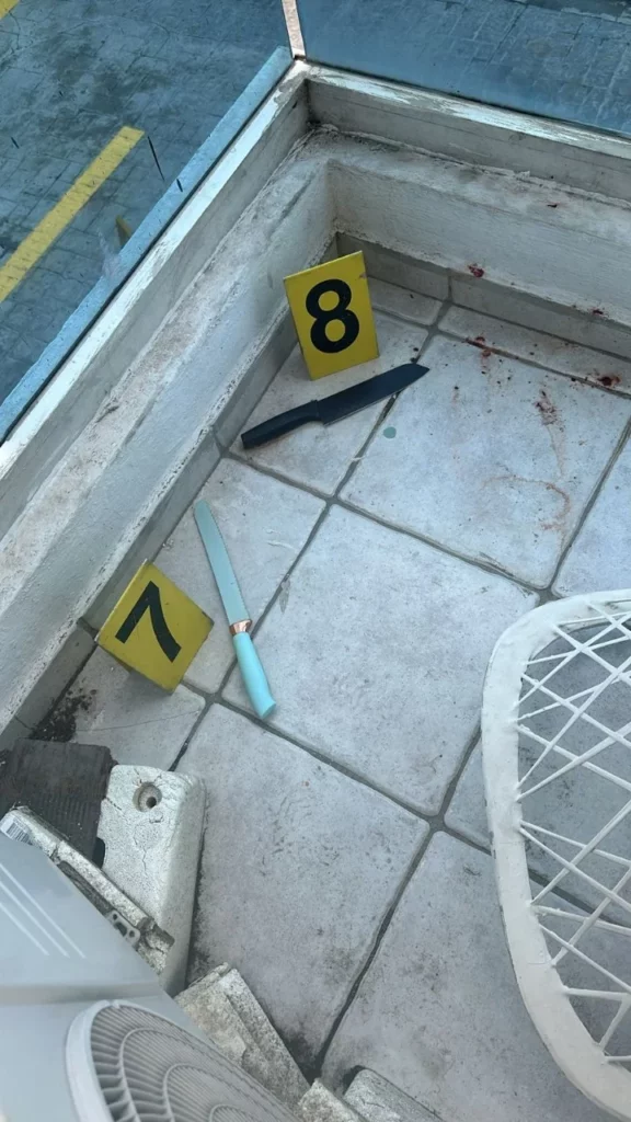 Según las investigaciones preliminares, el crimen fue motivado por problemas de índole pasional. En el lugar del hecho fueron recolectados cinco cuchillos.