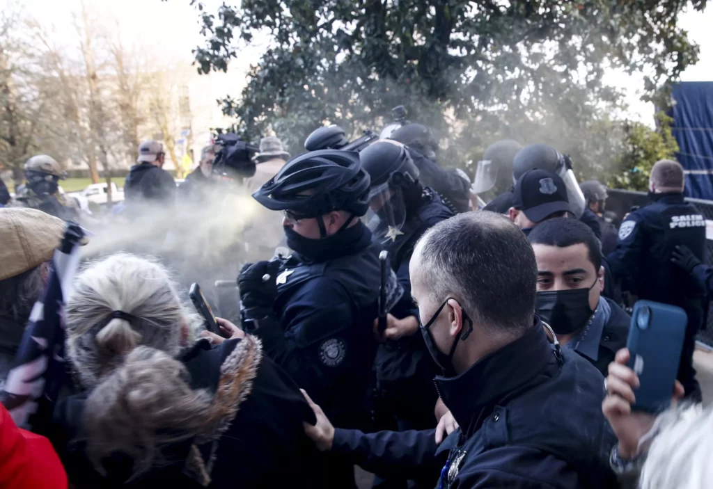 La tensión entre los manifestantes y la Policía que protegía el edificio escaló y algunos de los primeros lograron superar la vigilancia y entrar en el Capitolio tras haber “usado espray con agentes químicos”, indicó la Policía Estatal de Oregón.