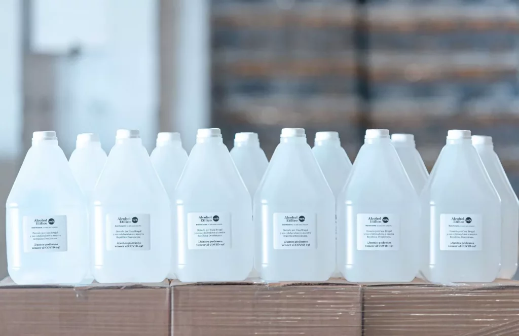 Casa Brugal agradeció a Vinícola Del Norte, Plastidel y Nesplas por envasar el alcohol y por la donación de galones y cajas, para que la entrega del donativo se pudiera realizar de manera rápida y segura.
