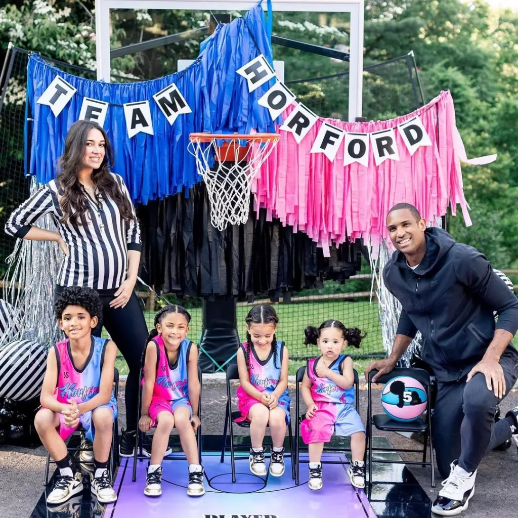 A través de las redes sociales la modelo colgó una fotografía de sus cuatros hijos uniformados simulando un equipo de básquet donde esta representa el árbitro y Al, el entrenador.