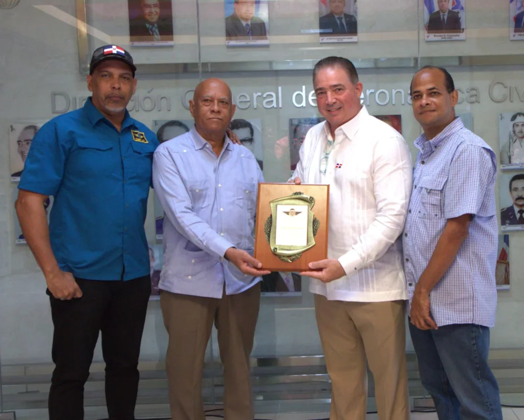 También, fueron reconocidos Gender Damián Castro, director de Vigilancia Seguridad Ocupacional, y Claudia Beatriz Roa, directora de Navegación Aérea del IDAC, respectivamente. Además de Paulino, integraron la comitiva del Club de Ultraligeros del Caribe, Eddy Martínez Carpio y Valentín Marzo.