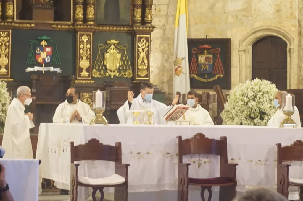La misa oficial en la Catedral Primada de América fue presidida el párroco Nelson Clark, con la presencia de escasos feligreses, cumpliendo con las restricciones y medidas bioseguridad sanitaria para evitar la propagación del Covid-19.