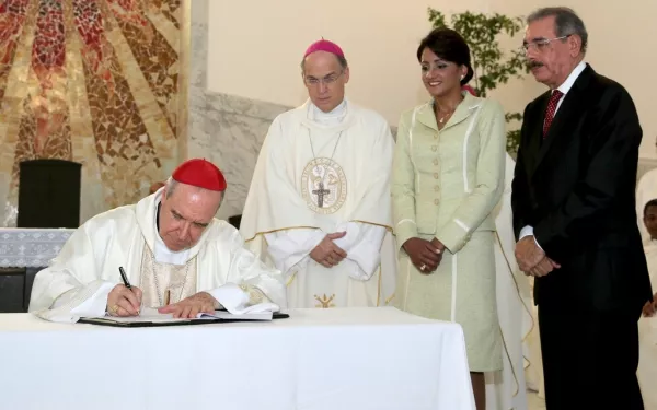 Previo a la firma del acuerdo, monseñor Nicolás de Jesús Cardenal López Rodríguez, concelebró junto al padre Lorenzo Vargas, Vicario de la Paz de la Arquidiócesis de Santo Domingo una Eucaristía con motivo de la clausura del XXXI Encuentro Nacional de Pastoral.