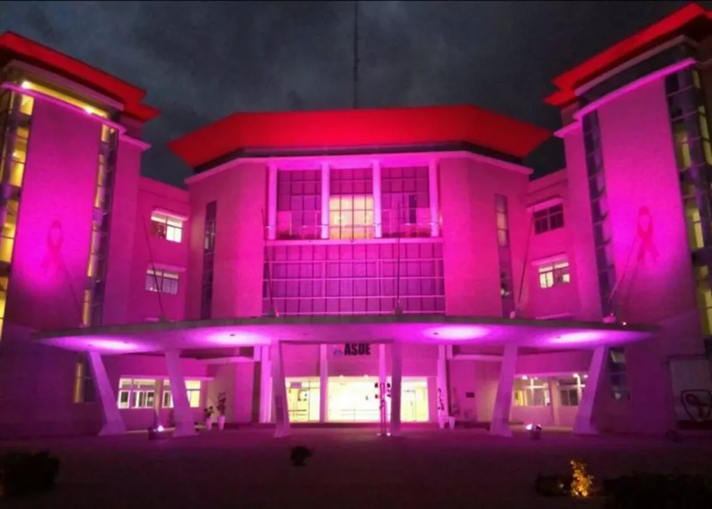 SANTO DOMINGO.-Durante todo el mes de octubre se conmemora el mes internacional de la lucha contra el cáncer de mama, razón por la cual, la alcaldía Santo Domingo Este se suma a la iniciativa del despacho de la primera dama e ilumina de rosa su palacio municipal.