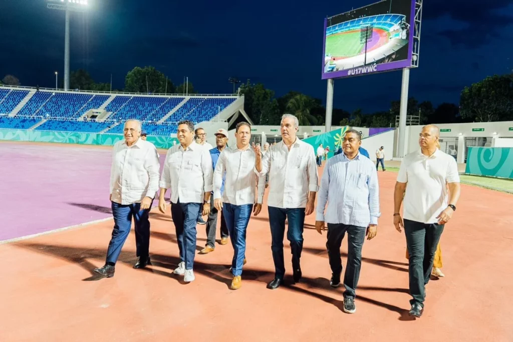 El presidente de la República, Luis Abinader, junto al ministro de Vivienda y Edificaciones (Mived), Carlos Bonilla, el ministro de Deportes, Kelvin Cruz, y el presidente del Comité Organizador de los XXV Juegos Centroamericanos y del Caribe Santo Domingo 2026, José P. Monegro, inauguraron la primera fase de la remodelación del Estadio Olímpico Félix Sánchez.