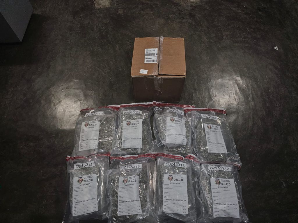 La incautación se produjo mientras agentes antinarcóticos y efectivos militares desarrollaban una operación conjunta en una de las áreas de carga de la terminal aérea. Durante el proceso, una unidad canina especializada alertó de manera positiva sobre la posible presencia de sustancias controladas en el interior de una caja de cartón procedente de los Estados Unidos.