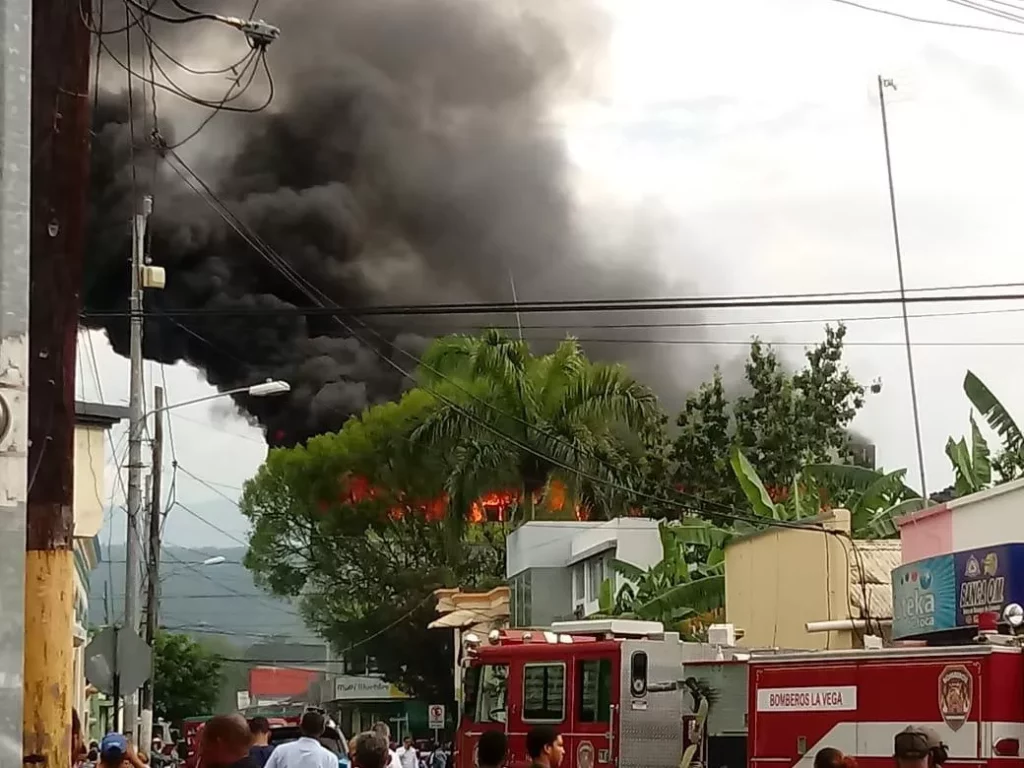 De acuerdo al vocero del Cuerpo de Bomberos de La Vega, César Abreu, el incendio, que fue sofocado, inició en el cuarto nivel del establecimiento comercial. Dijo que no se reportaron heridos.