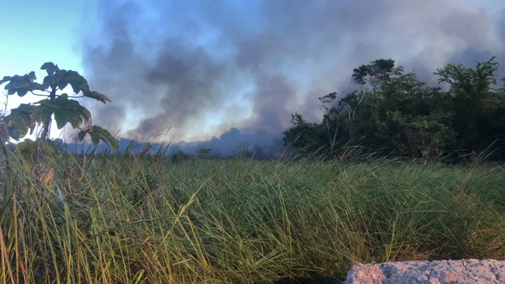 SANTO DOMINGO.- Un incendio forestal se registra en el kilómetro 5 de El Portillo, en el municipio de Las Terrenas.