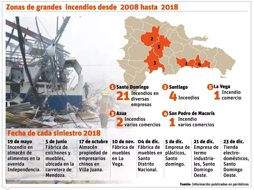 Solo en diciembre ocurrieron tres grandes incendios, en Santo Domingo, dejando pérdidas de vidas y decenas de familias afectadas.