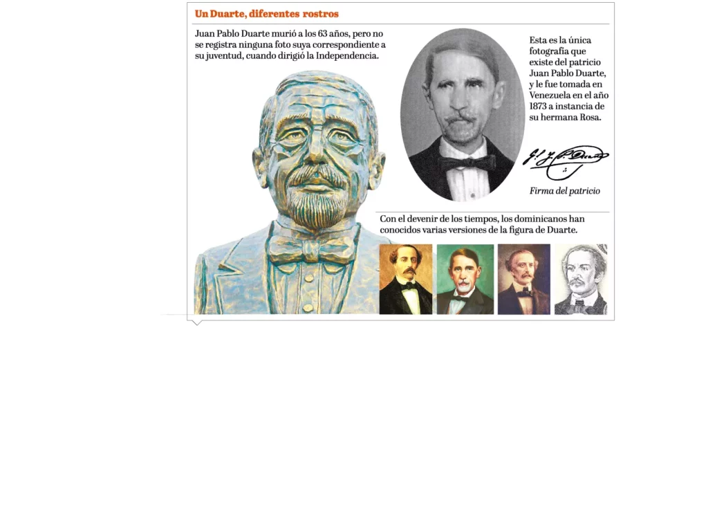 En el caso del patricio Juan Pablo Duarte solo hay una fotografía de él y fue tomada en 1873, mientras estaba en Venezuela en la etapa final de su vida.