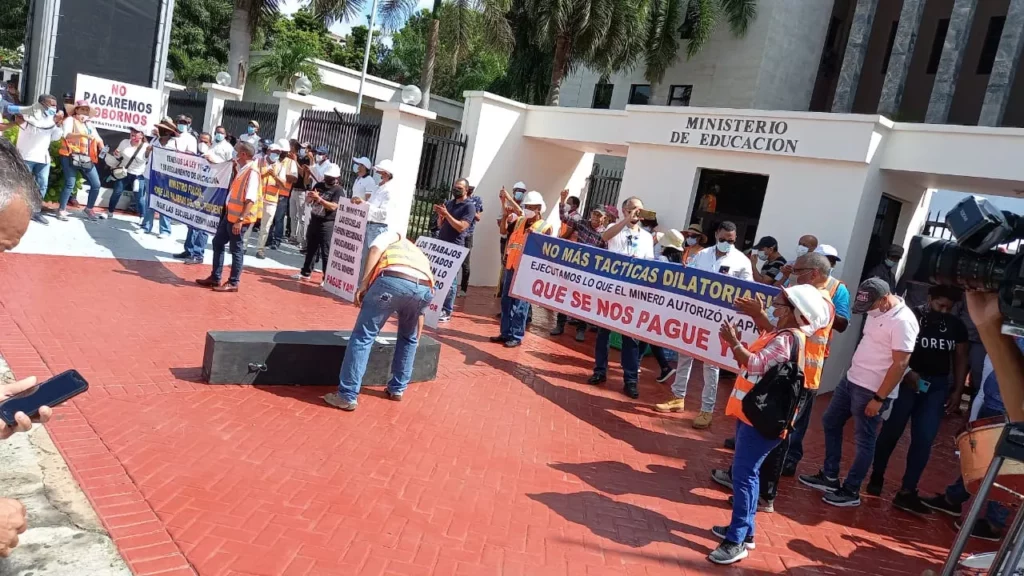 Los ingenieros están apostados frente a la sede el Minerd desde tempranas horas de la mañana de hoy, portando carteles que sostienen sus demandas dirigidas al presidente de la República, Luis Abinader y al ministro Roberto Fulcar.
