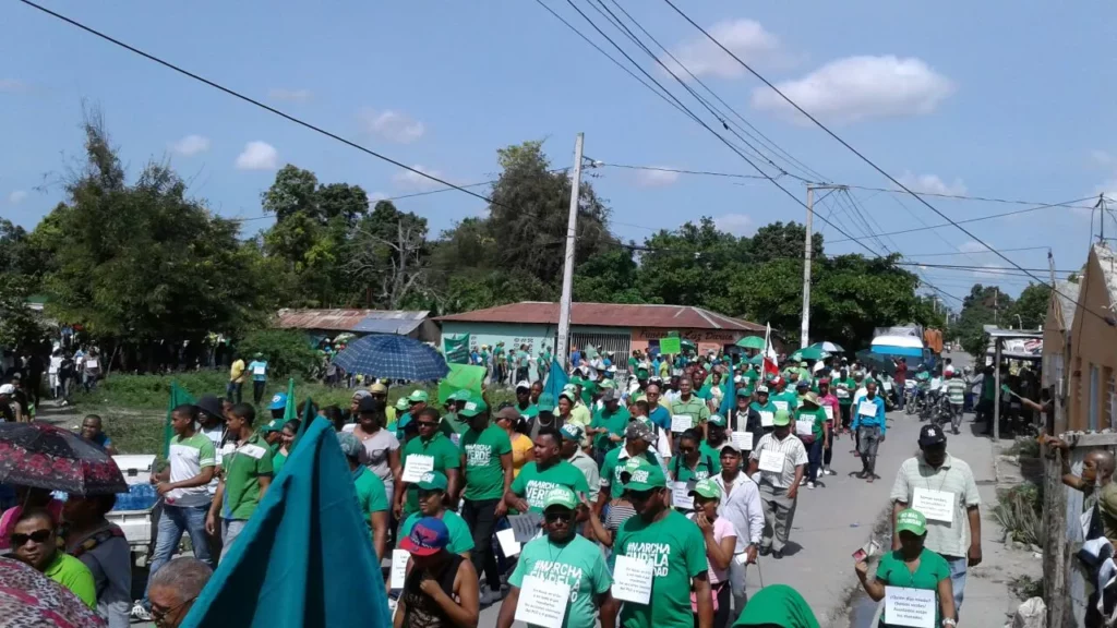 Azua.- Inició hace unos momentos la marcha verde contra la impunidad, en Azua, donde participan miles de personas que reclaman a las autoridades una investigación para someter a los vinculados en el caso Odebrecht.