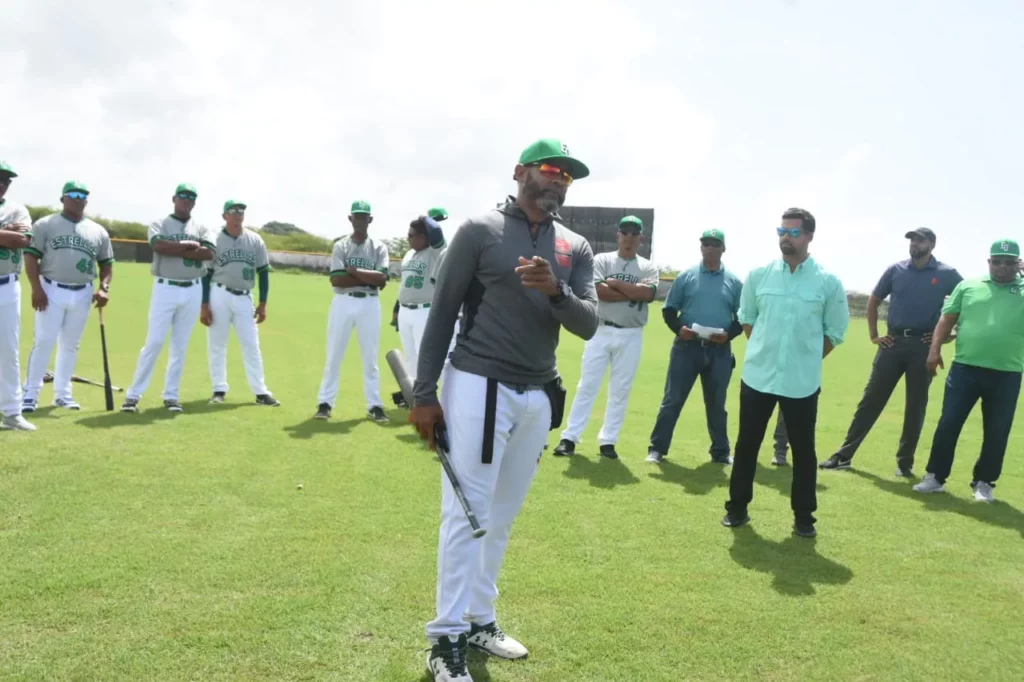Fernando Tatis, dirigente campeón con el conjunto verde, encabezó el inicio de los entrenamientos, con el discurso de apertura.