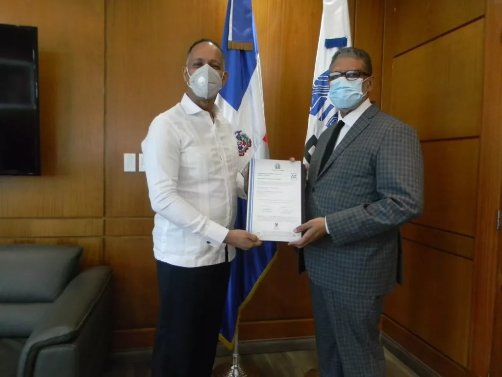 El certificado lo recibió el director general de la entidad, Modesto Guzmán, de la mano Armando García, director general de la Oficina Presidencial de Tecnologías de la Información y Comunicación (OPTIC).