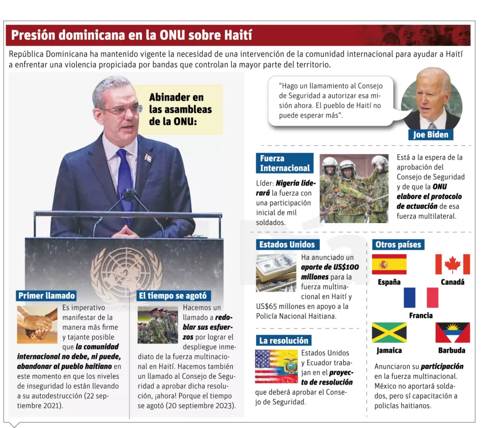 La Asamblea de la ONU que concluyó el viernes puso en agenda prioritaria para el Consejo de Seguridad la autorización de una fuerza en Haití para ayudar a la Policía a hacerle frente a las pandillas que controlan más del 70 por ciento del territorio haitiano y amenazan con derrocar al gobierno del primer ministro Ariel Henry cuando este intenta tomar decisiones contrarias a los intereses de los grupos que respaldan a las bandas criminales, responsables de miles de asesinatos, violaciones y secuestros.