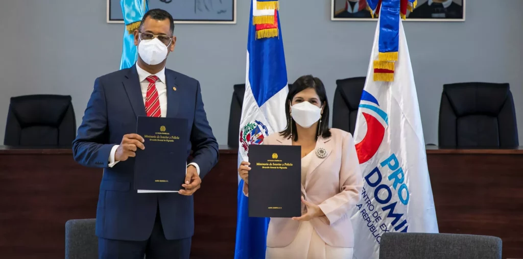 El convenio, de dos años de duración, fue firmado en la sede de la Dirección General de Migración por el Director General de la Dirección General de Migración, Sr. Enrique García y la Directora Ejecutiva de ProDominicana, la Sra. Biviana Riveiro.