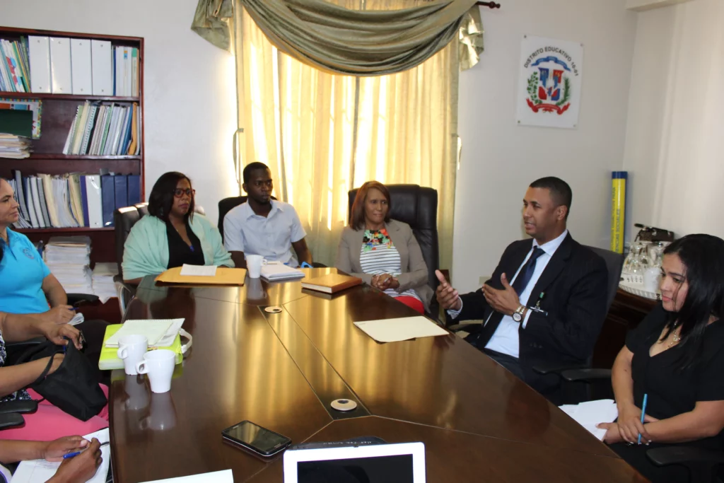 Amaury García Silverio, director general del centro de salud se reunió con la directora del Distrito Educativo 10-01 y los directores y técnicos de diferentes centros educativos del municipio de Santo Domingo Norte para coordinar las acciones educativas de los jóvenes.
