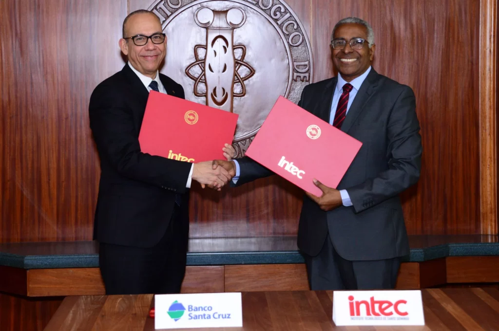 El convenio de colaboración fue rubricado por Fausto A. Pimentel, presidente ejecutivo del Banco Santa Cruz, y Rolando M. Guzmán, rector del INTEC.