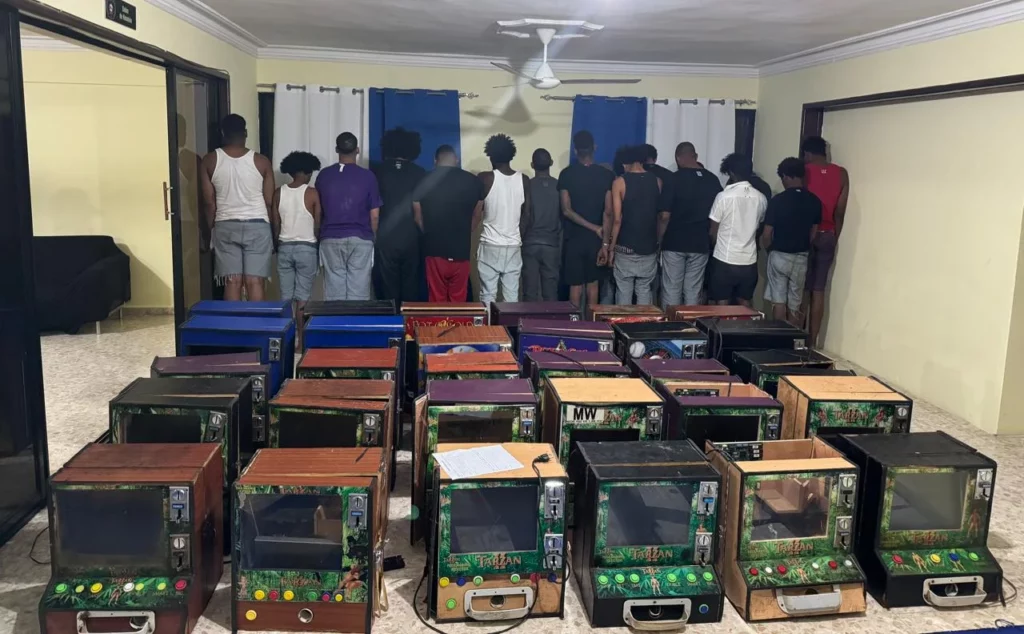 Los agentes también incautaron dos pistolas calibre de nueve milímetros con su cargador y varias cápsulas, 06 balanzas, un radio de comunicación, decenas de armas blancas, 30 máquinas tragamonedas y RD $21,000 pesos dominicanos.