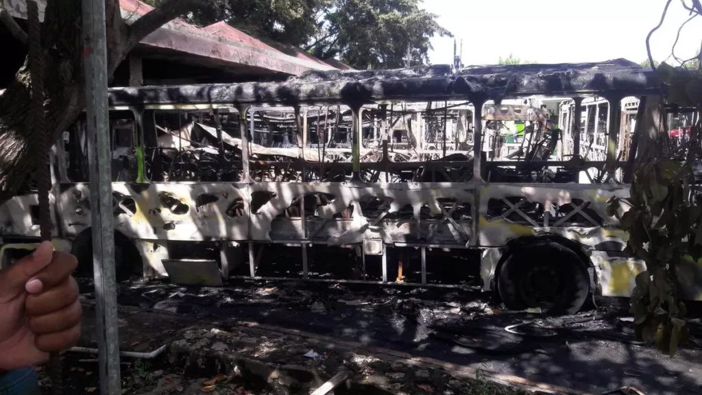 Investigan incendió que consumió 11 autobuses de la Omsa