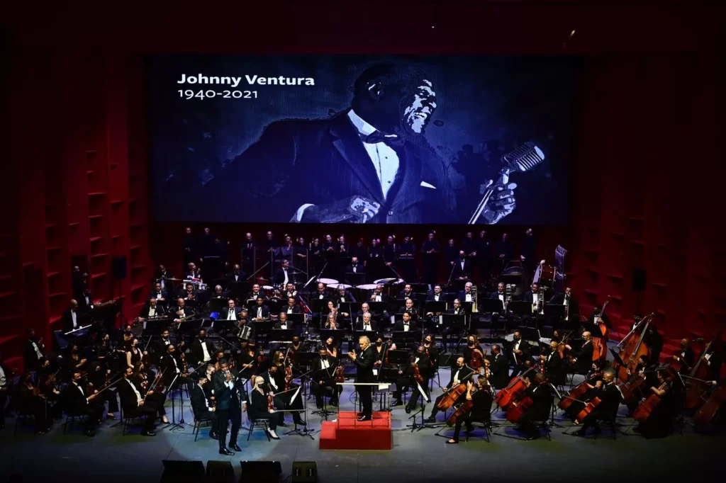 Santo Domingo.- El Teatro Nacional Eduardo Brito sirvió de escenario para disfrutar de uno de los momentos más emotivos de la Gala Sinfónica de Banreservas con motivo de su 80 aniversario, cuando Jandy Ventura salió a interpretar las canciones de Johnny Ventura acompañado por la Sinfónica Nacional dirigida por el maestro José Antonio Molina.