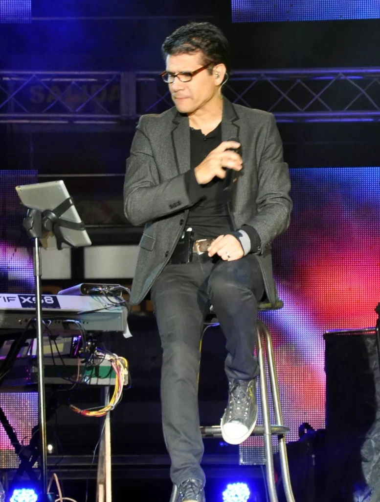 Un iPad en un pedestal, al lado un micrófono, una banqueta para sentarse; detrás una botella con agua, su banda compuesta por seis músicos, y al fondo ocho pantallas medianas que mostraban efectos especiales, un escenario con luces y un sonido impecable, fueron los elementos que dieron vida a este extraordinario concierto que aterrizó en suelo dominicano luego de girar por varios países.