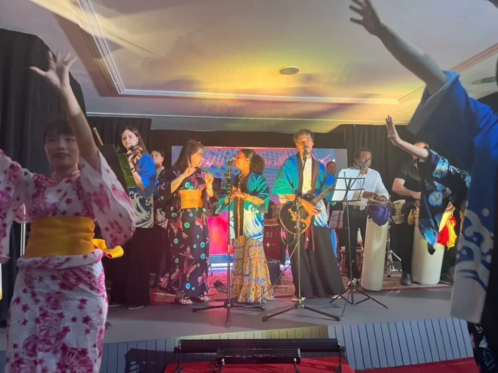 Las culturas japonesa y dominicana se unieron en la actuación de la JICA RD Bon Band, que interpretó canciones como Merengue Bon Bon y Bachata Bon Bon, con la colaboración especial de José Duluc y su banda, quienes interpretaron Plátano Bon Bon y Palo Bon Bon.