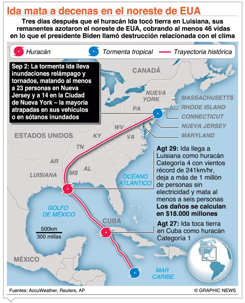 Biden tiene previsto visitar hoy Nueva Jersey y la ciudad de Nueva York para revisar los daños causados por la tormenta, informó la Casa Blanca.