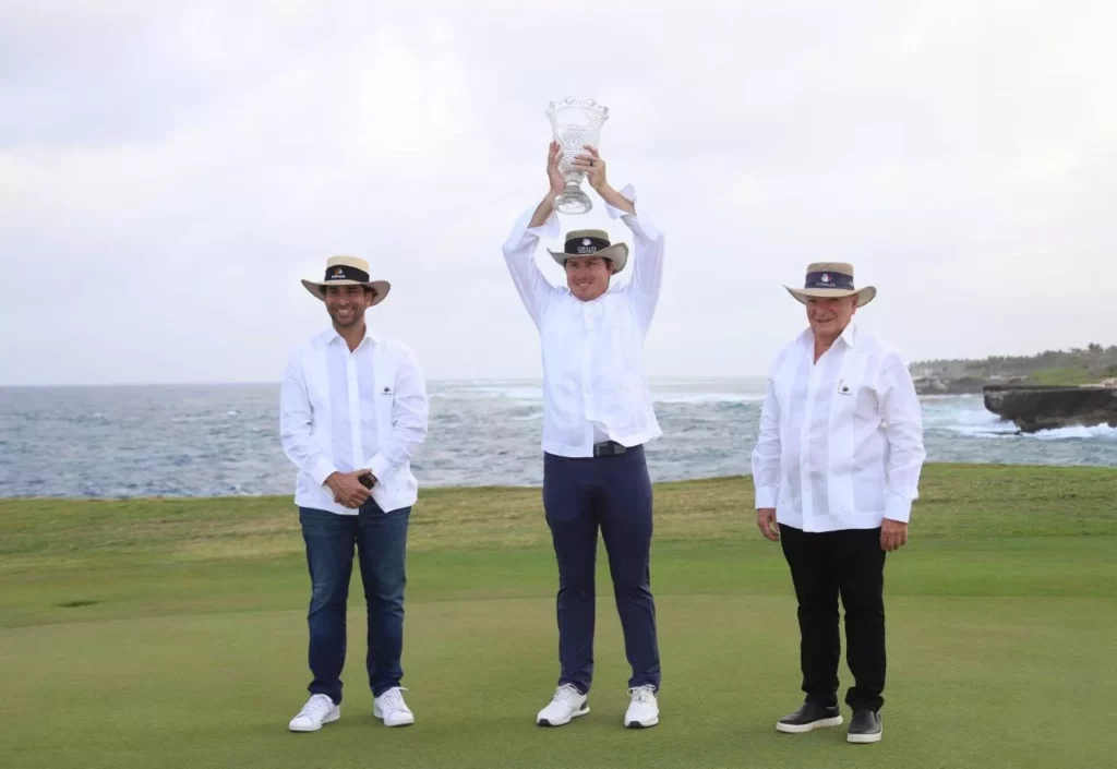 El jugador de golf profesional recibió su trofeo en una ceremonia de premiación encabezada por el presidente y CEO de Grupo Puntacana, Frank Rainieri; el director senior de Reglas y Competencias del PGA TOUR, Stephen Cox; y el vicepresidente senior de Negocios de Grupo Puntacana, Frank Elías Rainieri, en un torneo histórico por ser el primer evento del PGA TOUR en realizarse dos veces en la misma temporada en más de 70 años.