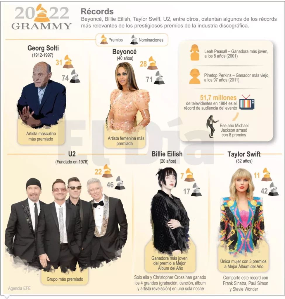 La victoria de Rodrigo como mejor artista nuevo la colocó en una compañía estimada que incluye a Carly Simon, Crosby, Stills & Nash, Tom Jones, los Beatles y Billie Eilish. Muchos premios entregaron durante la llamada “Premire”, una ceremonia previa a la transmisión en la que se reparten la mayoría de los trofeos.