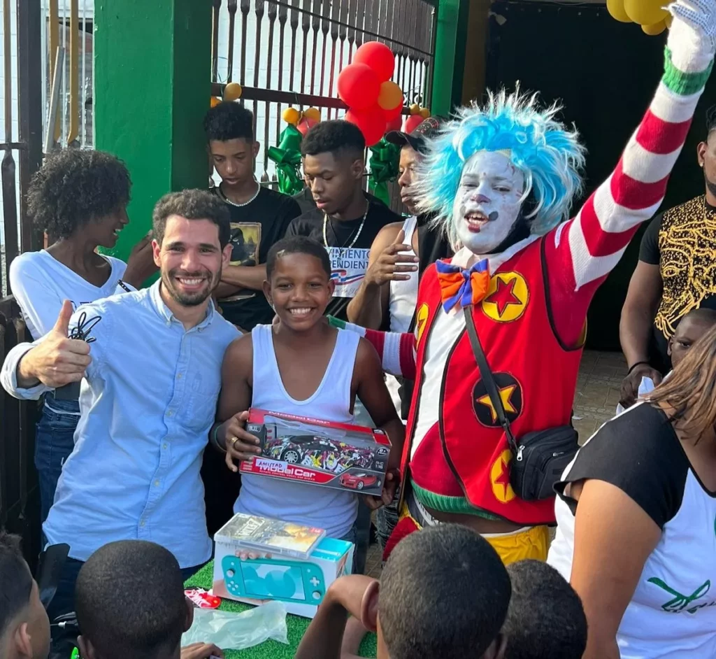 Convencido de que estos jóvenes son “la esperanza y futuro del país” el miembro de la Fuerza del Pueblo se esmeró en sacarle una sonrisa a cada uno de los 200 niños presentes con dinámicas y sorpresas, llevando un payaso navideño, máquinas de algodón de azúcar y rifas en las que destacaron un Nintendo Switch, un MotoCross, entre otros premios.